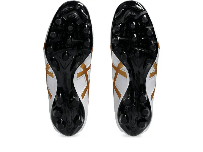 The shoe’s PU outsole sports oval studs for stability and better grip.